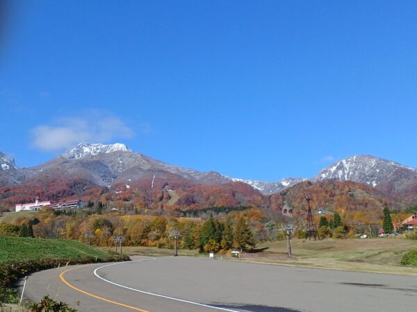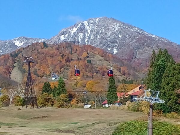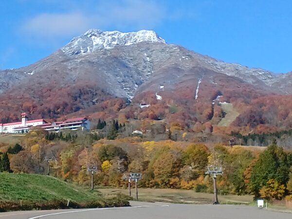 10月28日の初冠雪以来、今年2回目の雪化粧。この地域では昔から「妙高山が3回白くなると、里にも雪が降る」と語り継がれているので、音楽堂夢周辺もそろそろです。また、「カメムシの多い年は大雪になる」との言い伝えもあり、大量発生している今冬は、さてどんな冬・雪になるのでしょう⁉ (写真左:妙高山 2454m 、右:神奈山 1909m)。